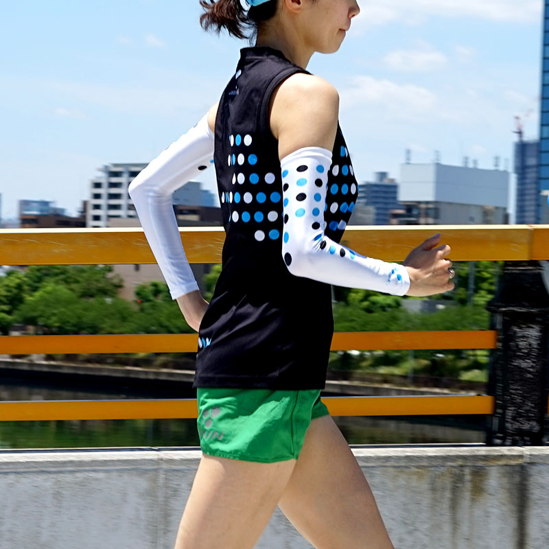 - 真夏のレースやトレーニングでは気化熱効果による冷却作用と紫外線から肌をまもるUV効果で快適なレースシーンを提供!